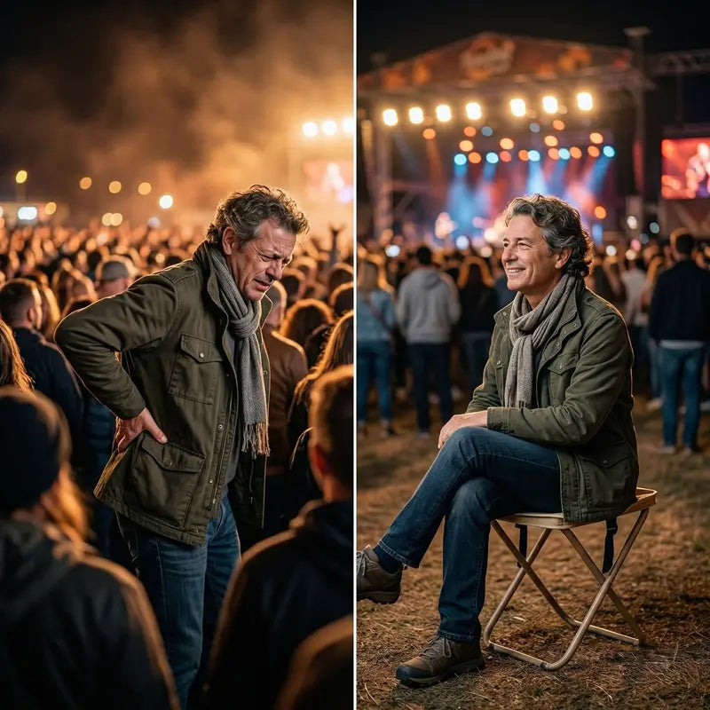 Stop standing in pain and take a seat anywhere with this compact, twist-lock stool. It expands from a slim pouch to a full-sized seat in seconds, giving you instant relief on the go.
